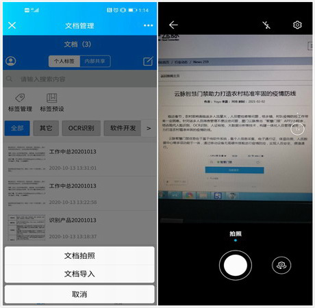 搜索微信“云脉文档管理”小程序,把拍照或上传图片进去扫描识别,云脉文档管理小程序就可以对图片中的文字进行识别进而转为可编辑文字信息,并且运用最新先进的智能处理技术对图片图像进行美化,包过图片增强、增亮、二值化、灰度,去边框等多种图像处理模式,提高图片的整体质量方便二次使用和管理。对于识别后的文档系统会智能提取标签并进行标签分类,在需要时只要通过标签和关键字搜索就可以快速的找到包含标签或关键字信息的文档。