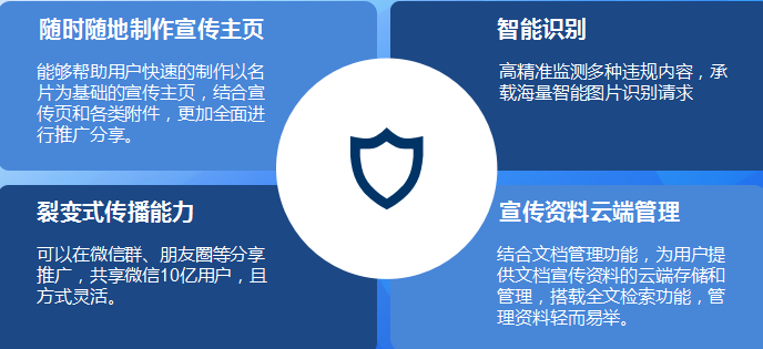 在小程序下,自定义配置带专属的个人名片,个人可在小程序中直接分享,搜索目标客户单位名片,分享的名片会有统一的个人、企业介绍、产品介绍,更好地推广企业的品牌文化,时刻输出企业品牌并宣传,提升品牌价值。