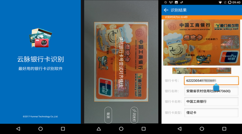 随着手机支付、网络支付已经非常成熟,商业移动应用越来越多,这些商业移动应用很多涉及到个人银行卡账户的绑定,实际测试中手动输入16—19位银行卡号码,速度慢,易出错,用户体验非常差。为了提高在移动终端上输入银行卡号的速度和准确性,厦门云脉技术有限公司结合银行、保险、证券、第三方支付等行业对银行卡号识别的迫切需求,推出银行卡识别SDK引擎,以满足各行业应用需求。